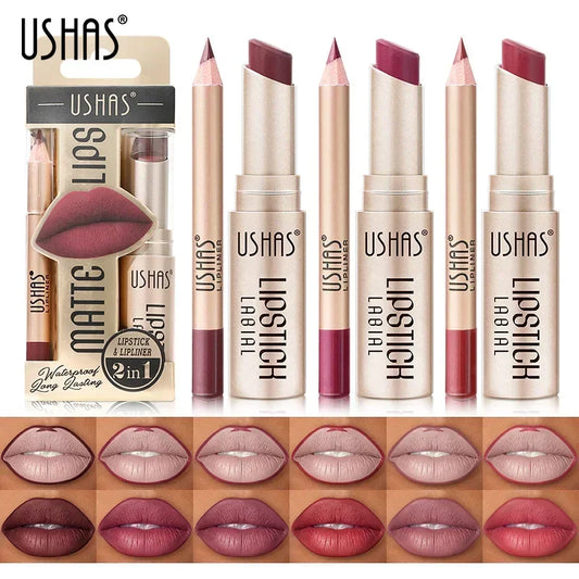2 In 1 Matte Satin Lipstick Set Lip With Liner Pencil