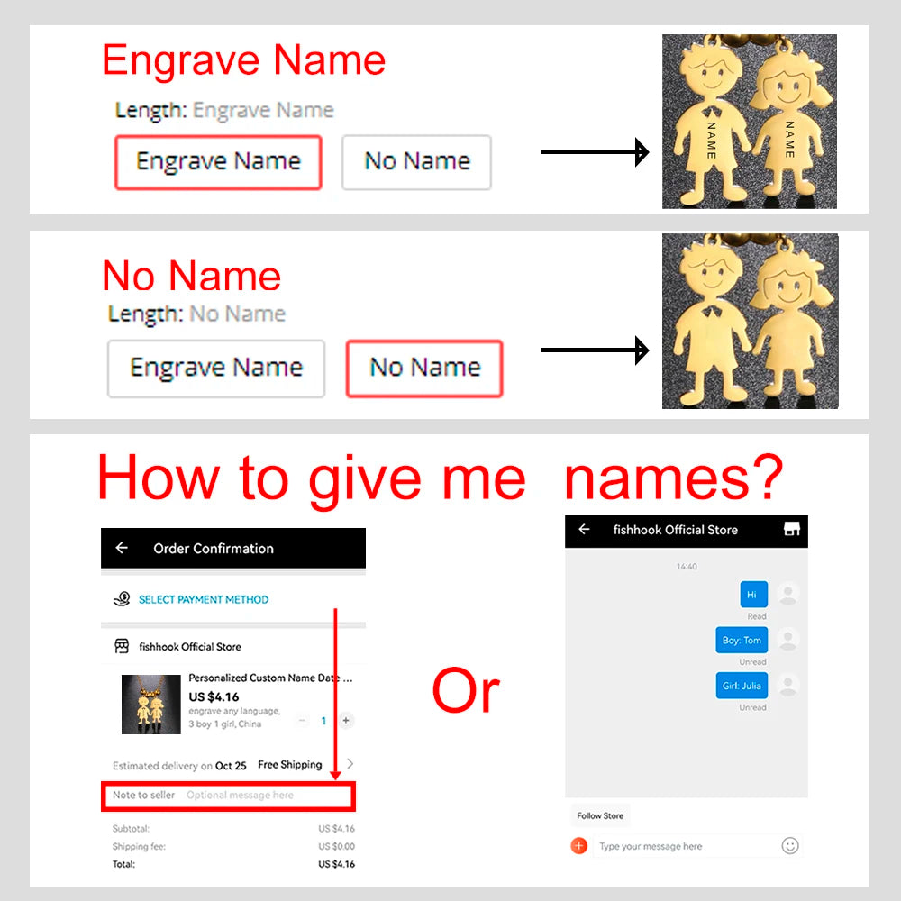 1.If you want engrave names, please select the "Engrave Name" , and let me know the letters you want to customize